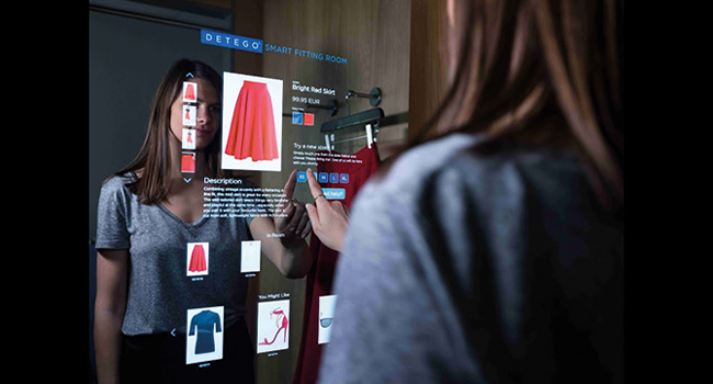 Müşteriler, soyunma odalarındaki akıllı aynayı kullanarak interaktif ekranda basit dokunma hareketleriyle ürün çeşitlerine göz atabilir. Seçilen kıyafet veya ayakkabının uymaması durumunda beden, renk veya stil açısından stok durumu kontrol edilebilir.