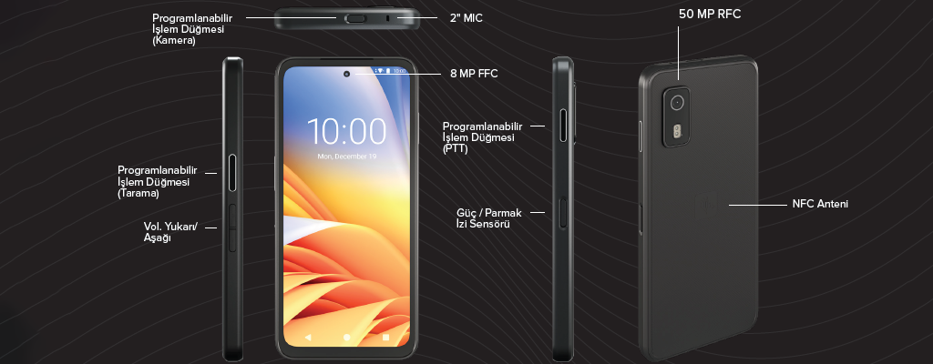 Büyük 6,7 inç Full HD ekran çalışmayı kolaylaştırır – personel daha fazlasını görür ve daha az kaydırma yapar. Dinamik 120 Hz yenileme hızı, ekranı olağanüstü duyarlı hale getirerek üstün bir kullanıcı deneyimi sunar. Parlak ekran her türlü ışıkta kolayca görülebilir. Su damlacığı önleme, ıslakken yanlışlıkla aktivasyonu önler. Oleofobik kaplama, ekranla sürekli etkileşime rağmen lekeleri önler. Ve dokunmatik ekran eldivenleri destekler – sahadaki personel için idealdir.